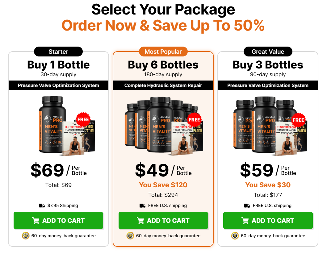 AlphaFuel Pro stands out as a well-rounded male vitality supplement designed to support energy, strength, stamina, and hormonal balance naturally. It is especially appealing to men seeking a non-invasive, long-term approach to improving physical performance and daily vitality. While individual results may vary, AlphaFuel Pro offers a balanced, science-inspired formulation that aligns with modern male health needs. When combined with a healthy lifestyle, regular exercise, and proper nutrition, AlphaFuel Pro can be a valuable addition to a man’s daily wellness routine.
